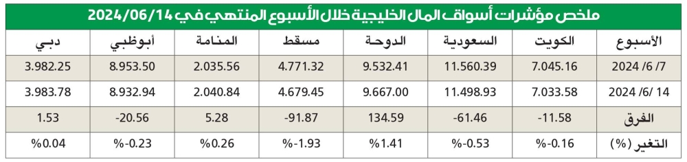 تقرير أسواق المال الخليجية الأسبوعي: تباين أداء المؤشرات وتراجعات محدودة في السوق الكويتي